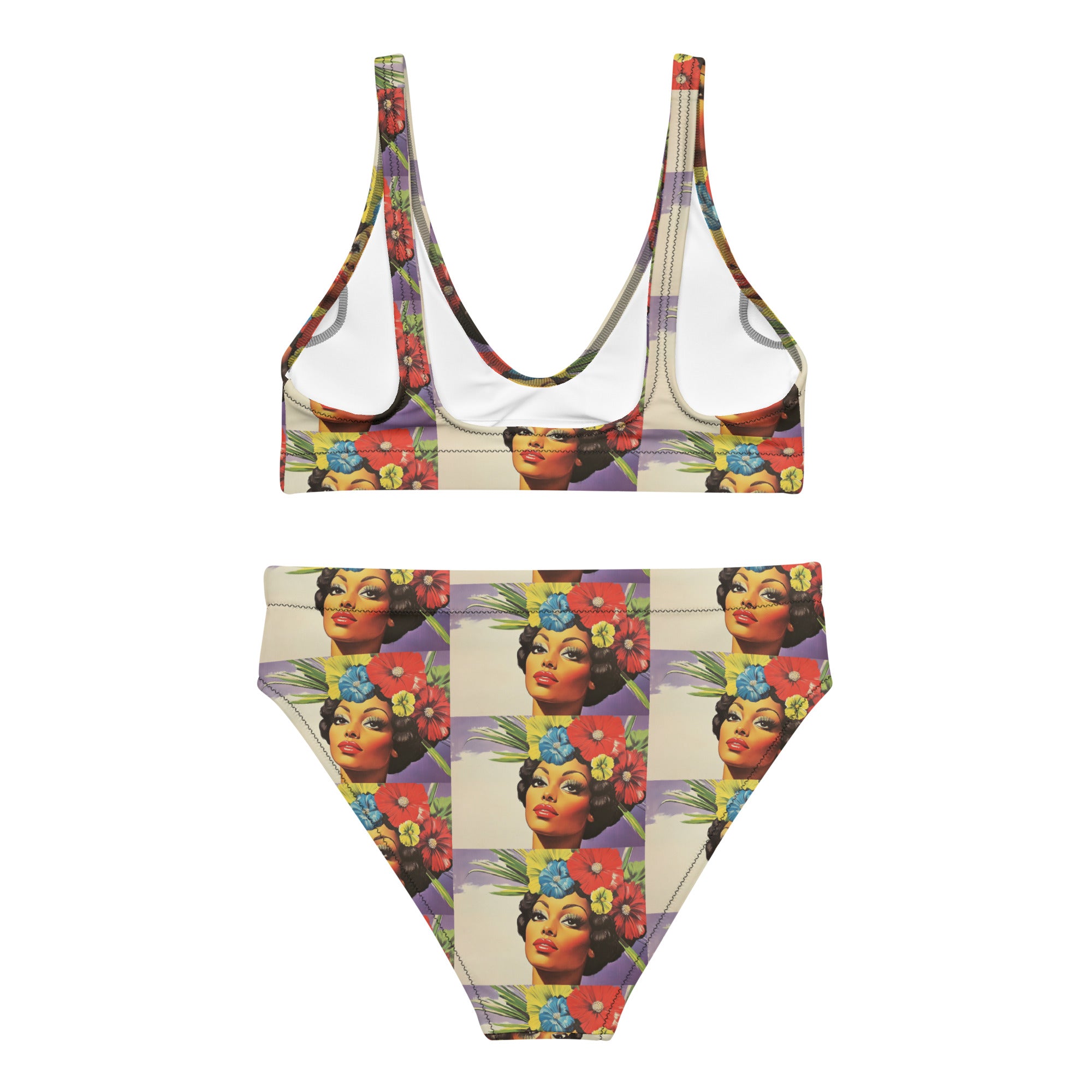 Bikini ecosostenibile a vita alta con stampa all over